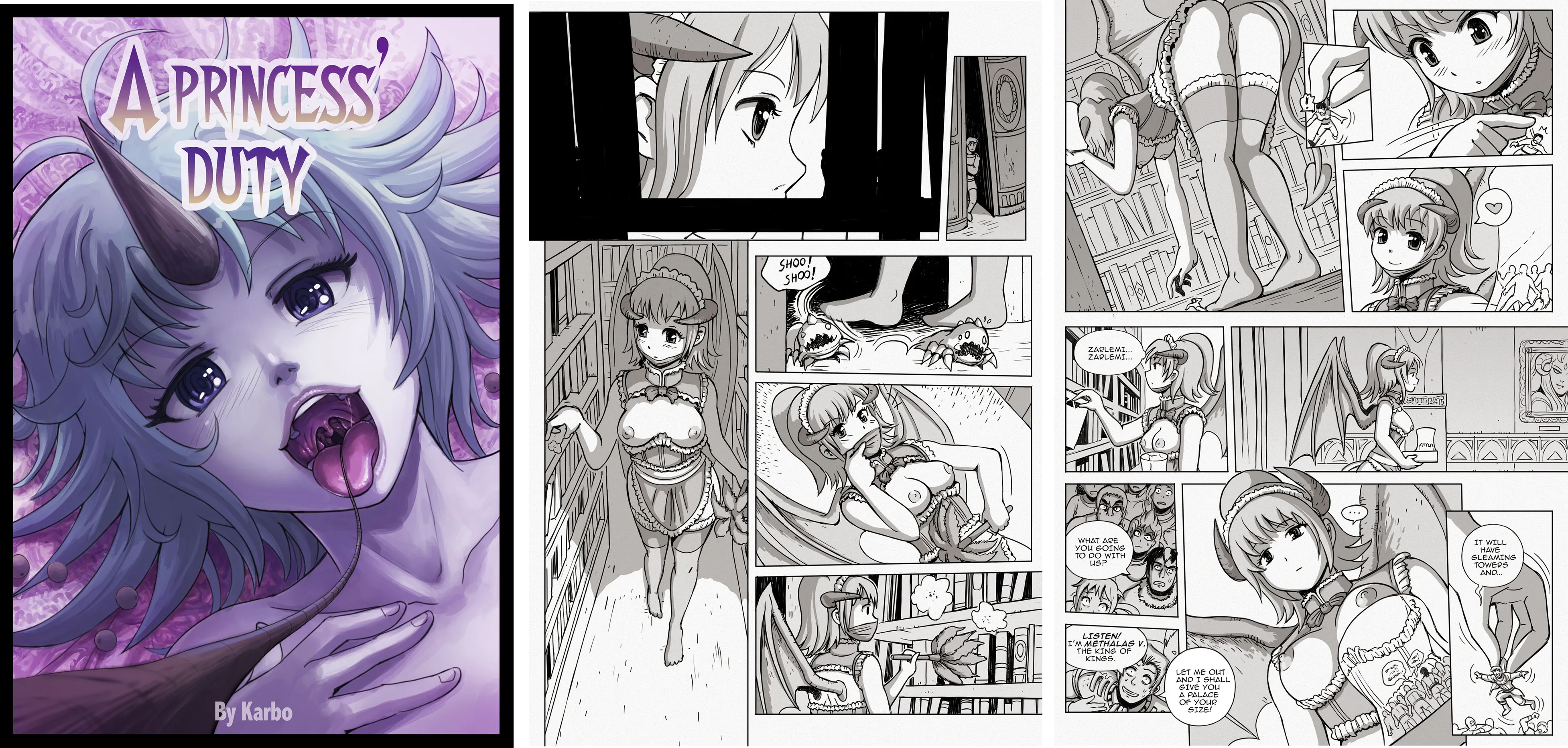 Ashmet possesses a very large appetite, even by succubi standards. She is able to effortlessly engulf astonishing quantities of food and her cavernous stomach never seem to get quite full. Like Menyssan, she used to work in the pits and to spend her days eating damned souls brought to her in long queues. Unlike Menyssan though, she didn’t enjoy her job nearly as much. She found a much greater purpose in serving house Malachos and she is very grateful to them for the opportunity. Ashmet's huge appetite comes in handy during her cleaning duties when she comes across stray souls hiding in the rooms of the palace or a gathering of them. Unlike most other succubi she never play with her prey, and completely disregard damned souls as anything else than food, instantly gobbling them up on the spot without a word. Just like with Menyssan, Ashmet’s enormous appetite fascinates Chalyss who love to feed her maid from time to time.