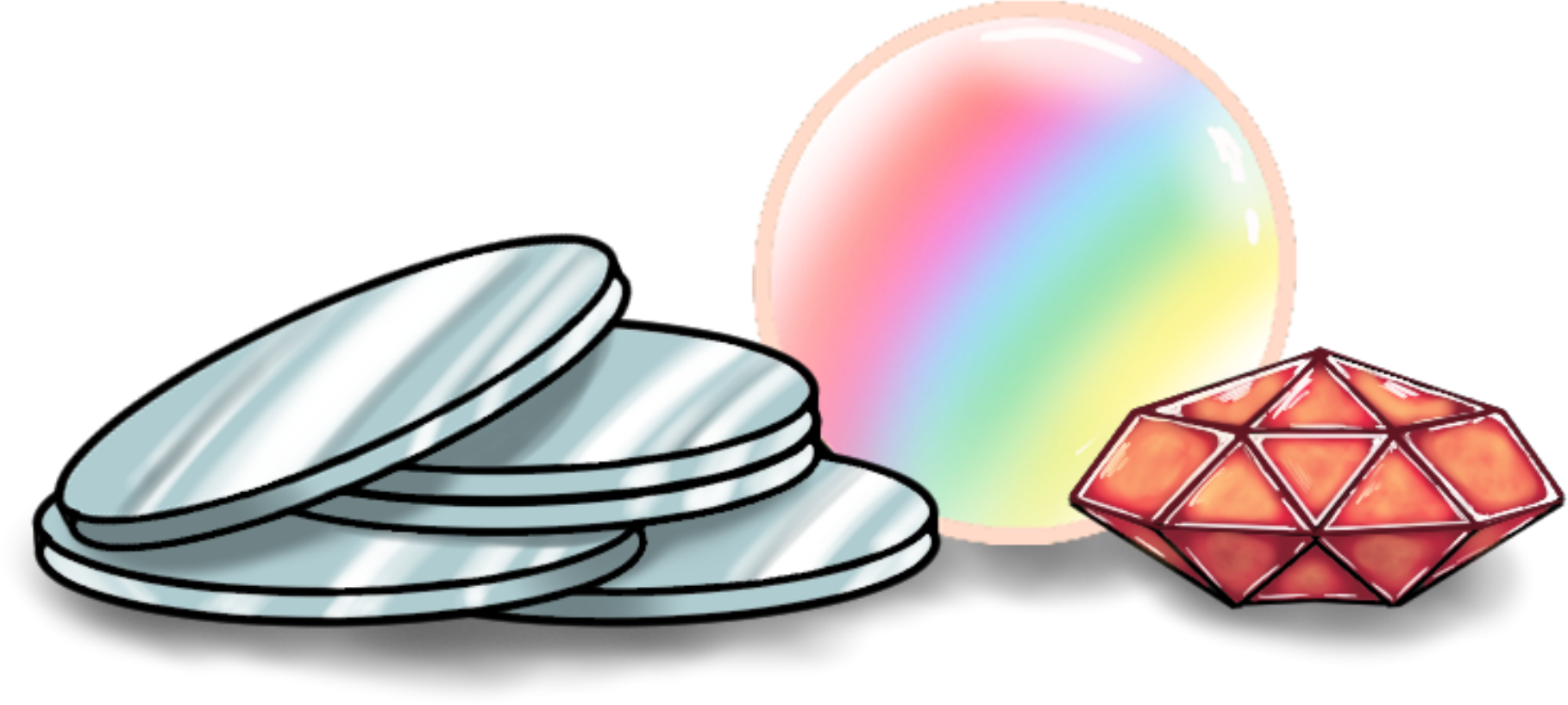 Faldong Gems (FG) are the second most used currency on Felarya, for important transactions. They appear as a small bright red gem, slightly warm to the touch, with always the same, slightly flower-shaped Rosakis cut and the same weight (Hence the popular expression "to give flowers to someone", meaning "to pay someone") A 1 carat Faldong gem of a rosakis cut is worth 100 Skevols.